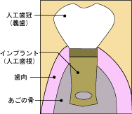 失ってしまった白分の歯の替わりに人工の歯根を顎の骨に埋め込み、 その上に人工の歯を作り、噛み合わせを回復する治療法がインプラント治療です。